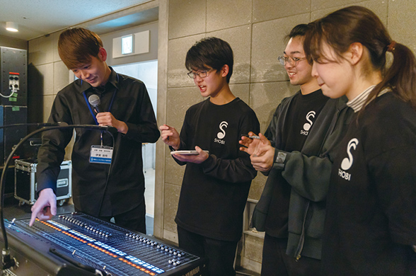 照明機器の基本的な取り扱いはもちろん、ステージ演出のプランニングから仕込み、本番までを経験します。
