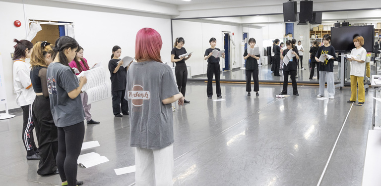 表舞台に立つ演者たちと共に舞台やステージを創る仕事を目指す演出・制作専攻であっても、ダンスや演技、ヴォーカルなどの実技について学んでいきます。それらによって、実際の現場で演者側のことを理解した質の高い演出や制作が可能となります。