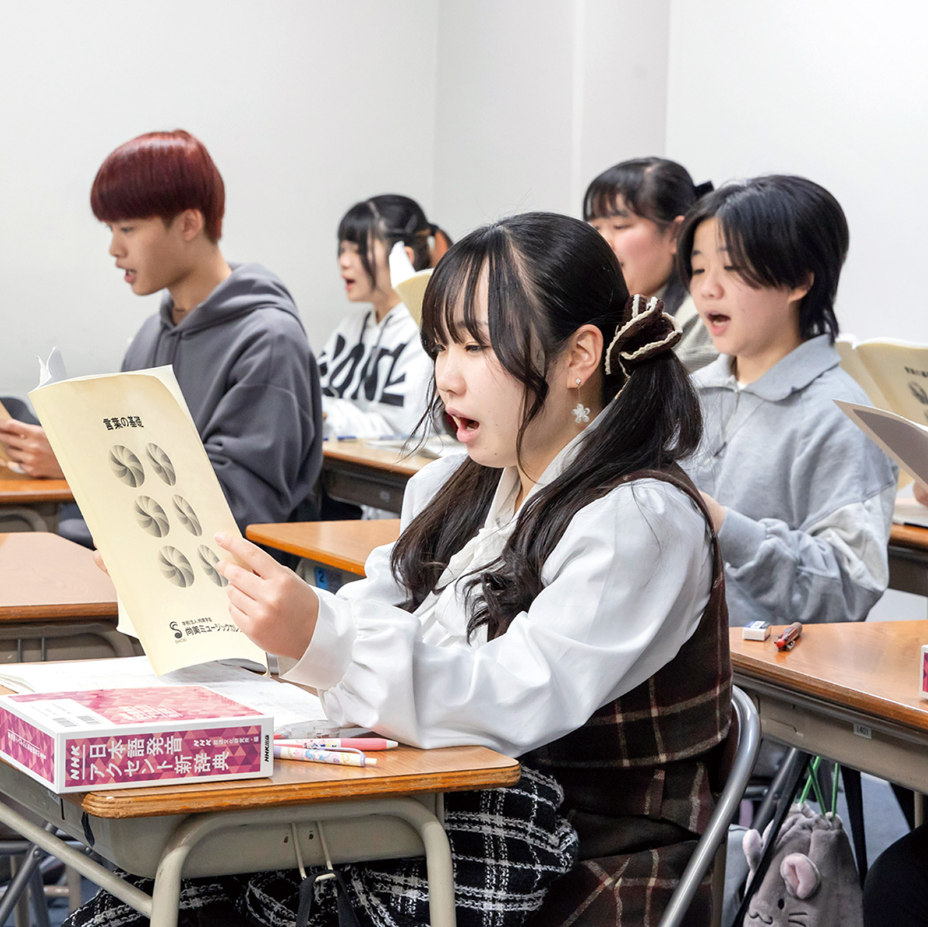 また、美しい日本語を話すためにアクセントの法則の理解を深めたり、滑舌訓練なども行い、即戦力を養います。