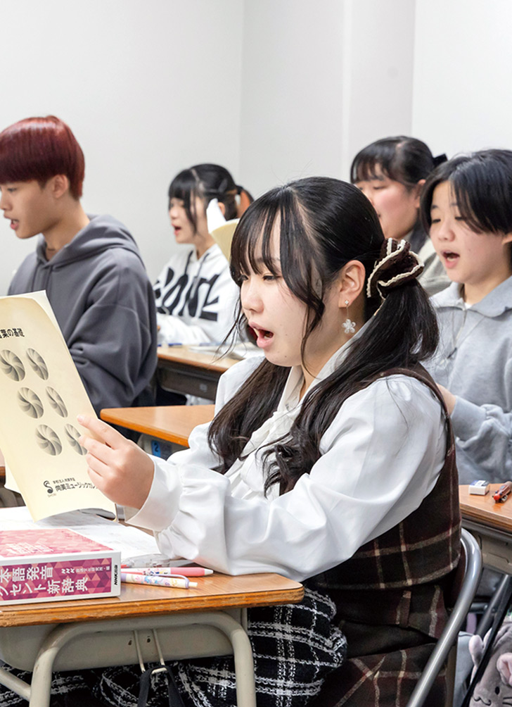 ソルフェージュ(読譜)で音楽の基礎力を養いながら、楽曲理解を深め、確かなヴォーカルスキルを身につけます。