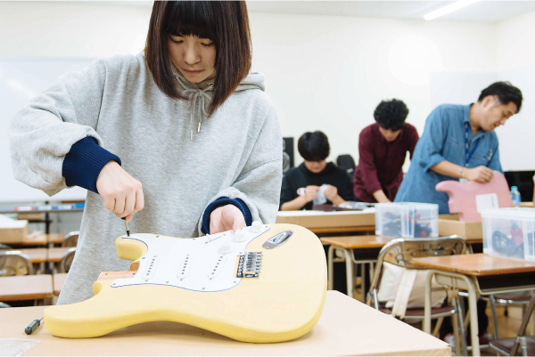 1年間を通して1本のエレキギターを製作。その工程の中でリペアの技術なども習得していきます。あなたの楽器関係の仕事の入り口を見出します。