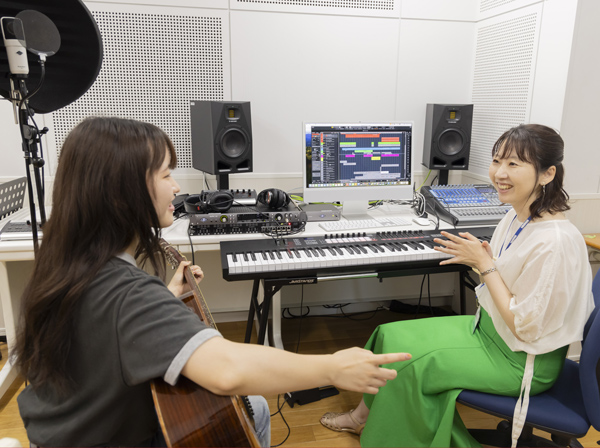 実際にレコーディングをしながら指導を受ける授業です。レコーディングされた自身の演奏を聴きながら確認していくシビアな世界。欠点を見つけるのにとても役立ちます。