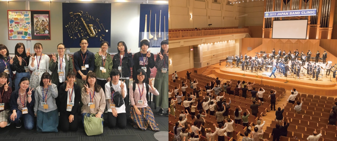 2 年次には毎年5 月に浜松市で開催される「日本吹奏楽指導者クリニック(JAPAN BAND CLINIC)への参加のほか、楽器博物館や楽器工場の見学なども予定しています(※吹奏楽・マーチング指導者専攻生は必修。参加費別途)。学外での研修を通じ、音楽業界に触れ、将来の進路選択に役立てていきます。
