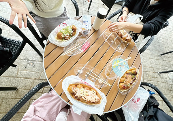 学校近くの商業施設に友達とたこ焼きを食べに。