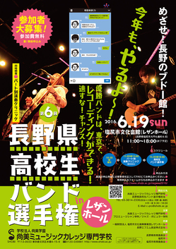 2016年6月19日、長野県のレザンホール(塩尻市文化会館)にて「第6回長野県高校生バンド選手権」を開催します!