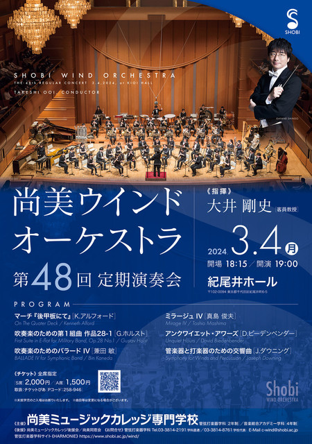 2024年3月4日(月)、紀尾井ホールにて「尚美ウインドオーケストラ 第48回定期演奏会」を開催します。