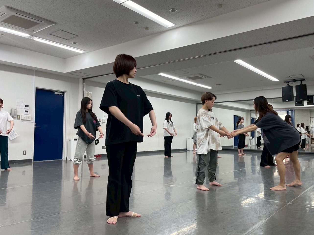 話を聞くだけでは飽きて(?)しまうので、授業オリエンで腕や足のポジションを習い、その後はコンビネーションを踊りストレス発散!!