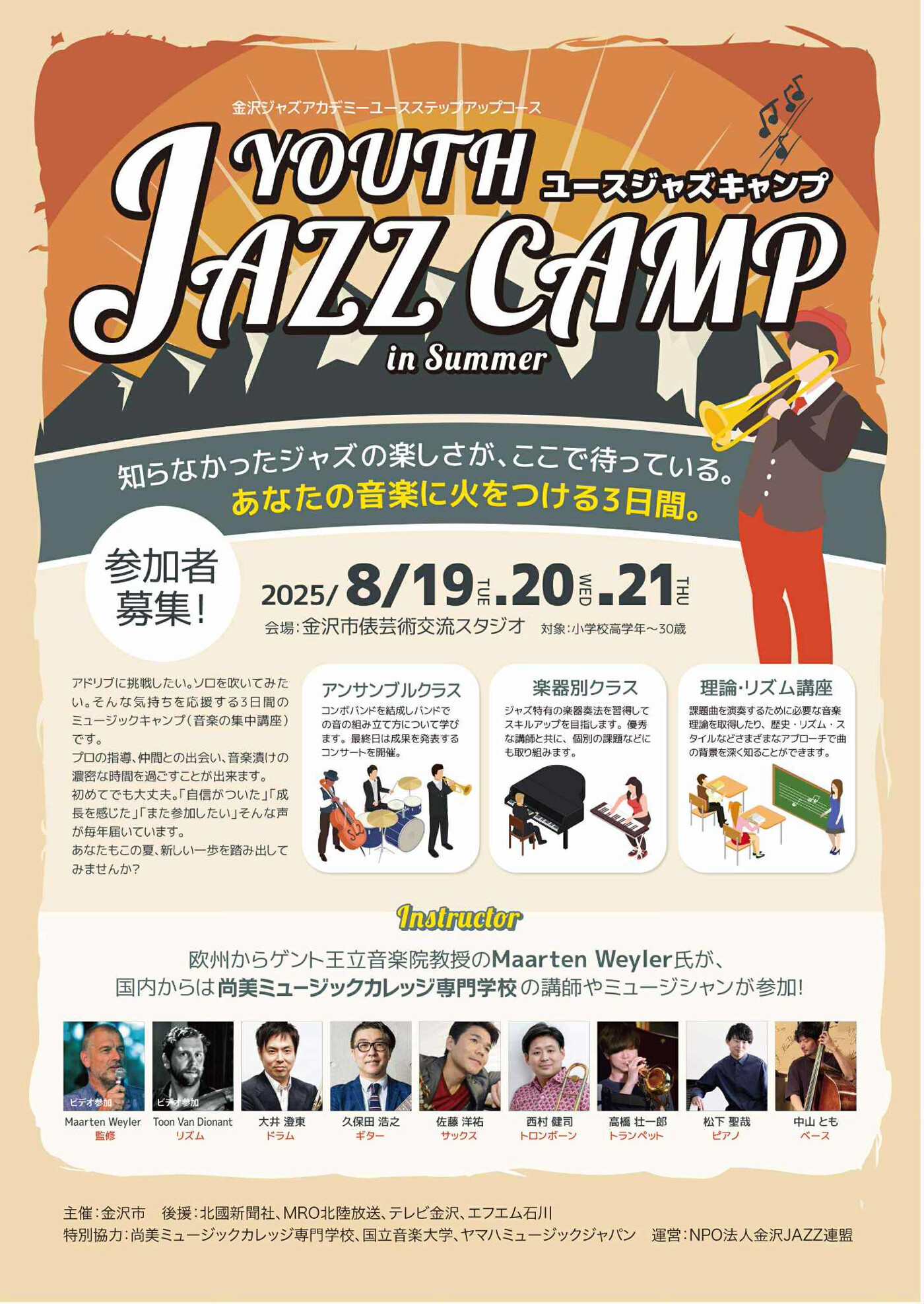 9月12日・13日「金沢 JAZZ STREET 2025」にジャズ・ポピュラー学科講師と在学生が参加する「YOUTH JAZZ CAMP BAND 2.0」が出演します