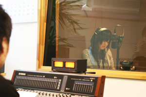 「おはようございます!」元気のいい挨拶から始まりました。さっそく台本が手渡されて、ディレクターさんと打合せ。数回読んだ後に収録ブースへ入りました。