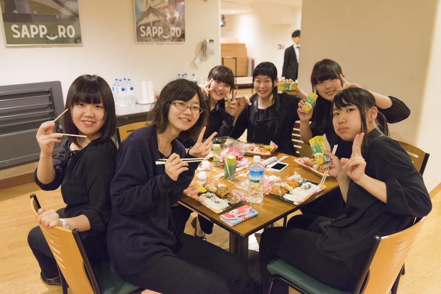終演後は翌日に備えバスで北見へ移動し、宿泊先の大広間にてバンドのメンバーが揃って夕食。北海道に着いてからはずっと慌ただしくお弁当を食べる食事ばかりだったので、少し心やすまるひとときでした。