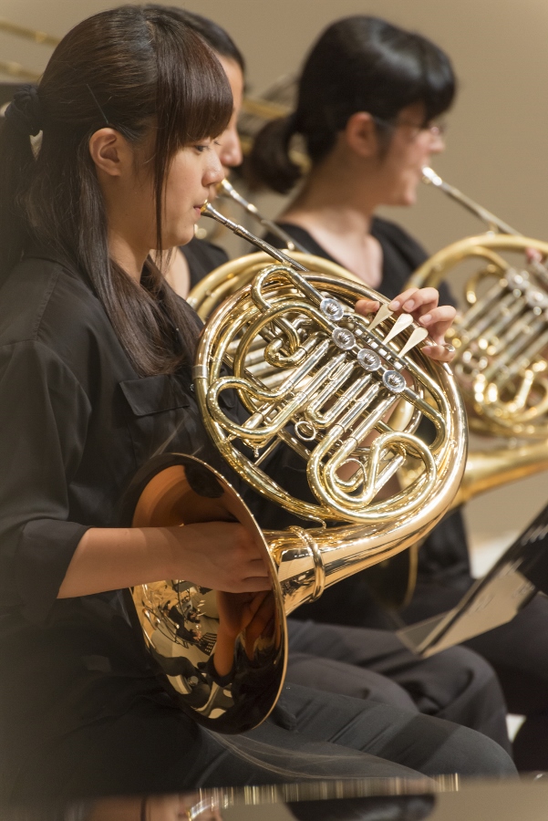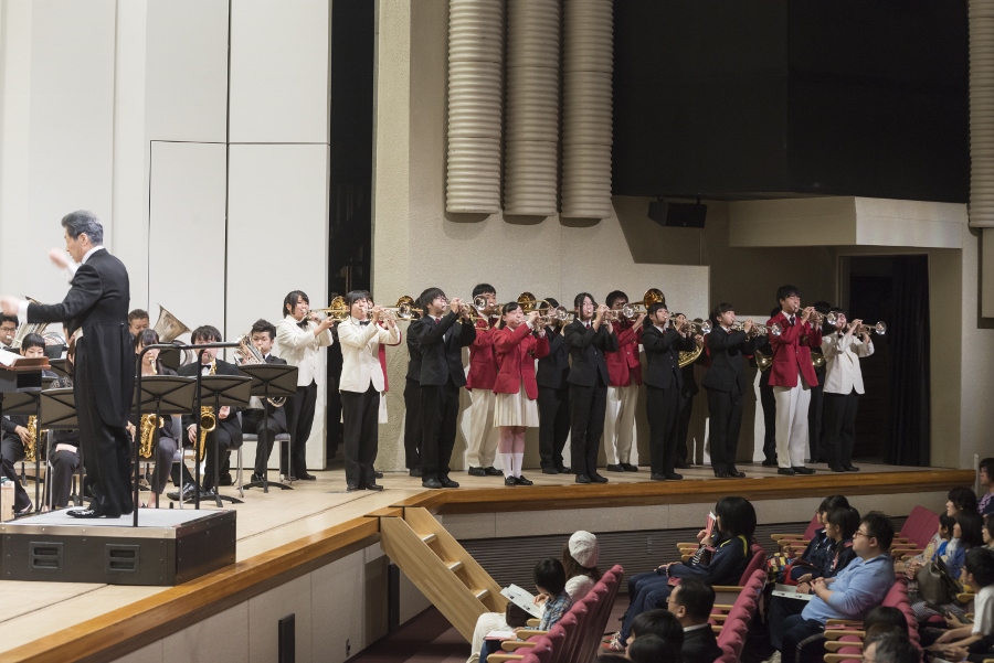 今回の演奏旅行では、《祝典序曲》(ショスタコーヴィチ)、《交響的序曲》(バーンズ)の2曲でそれぞれ現地の高校生によるバンダと共演。札幌公演では東海大学付属第四高等学校 吹奏楽部のみなさんと共演しました。